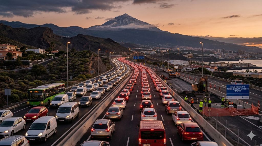 Son las seis y media de la mañana. Sales de La Laguna o de cualquier municipio del norte en dirección a Santa Cruz. Quizás te incorporas desde el área metropolitana hacia el sur de la isla. Todavía no ha amanecido, pero el paisaje ya es inconfundible: un mar de luces rojas de freno parpadeando en el horizonte. Tu mañana, como la de decenas de miles de tinerfeños, empieza en un atasco.